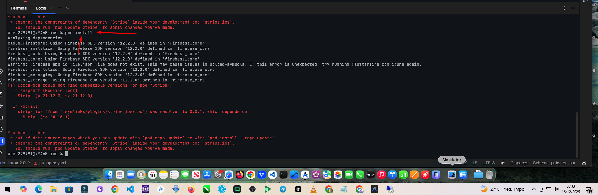 I'm having trouble running the project on my MacBook. When I run the "pod install" command, it gives the error shown in the attached image.