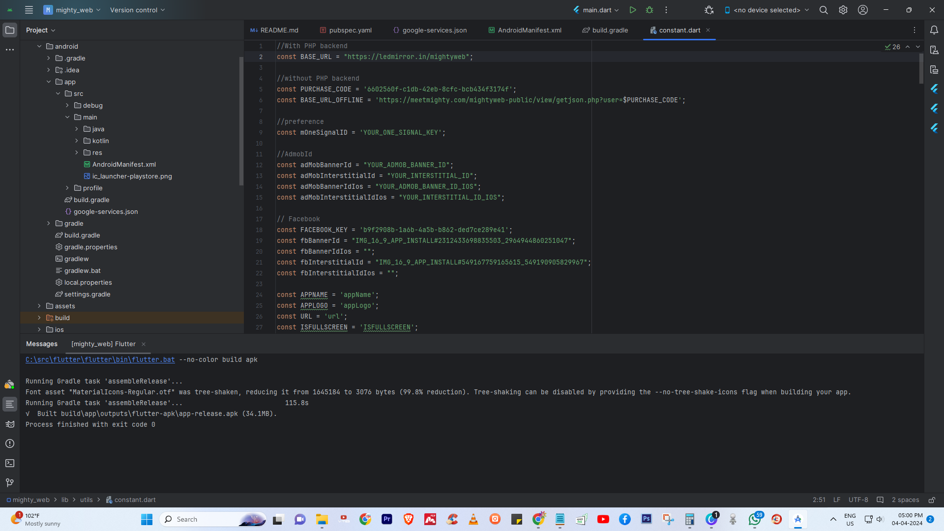 Can you please share the screenshot of constant.dart file which is available in the lib -> utils folder