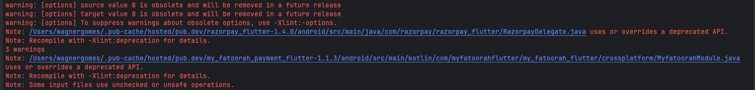 Note: /Users/wagnergomes/.pub-cache/hosted/pub.dev/my_fatoorah_payment_flutter-1.1.3/android/...